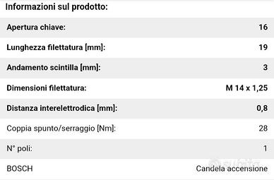 Causa errore di acquisto, vendo 4 candele di accensione bosch con chiave da 16mm e filettatura da m14x1.25.