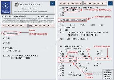 allego una copia di un libretto come prendere i dati del vostro veicolo che trovate dove sono le foto