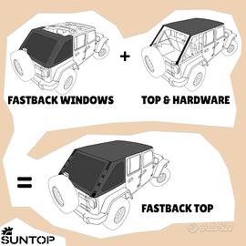 Soft top, cappottina, capote, telo, telino NUOVO tipo fastback per Jeep Wrangler JK.