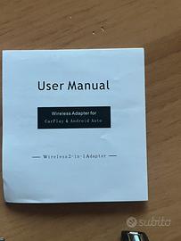 Adattatore wireless per CarPlay e Android Auto. Include manuale utente e cavo adattatore. - Compatibile con CarPlay e Android Auto. - Design compatto e portatile. - Facile da installare e utilizzare.