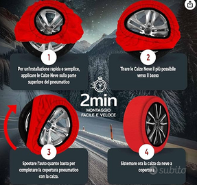 1 kit da 2 calze da neve tessili per auto,Silenziose, senza vibrazioni, facili e veloci da montare, nessun danno ai pneumatici. Con guanti inclusi nel kit
