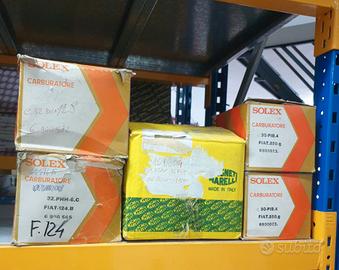 CARBURATORI VARIE MARCHE. Sono nuovi, fondo di magazzino. Se interessati contattare per disponibilità e prezzo. Vendita disponibile anche in stocco. Di seguito la lista dei pezzi disponibili: CARBURATORI WEBER - (FIAT 124 SPECIAL 1500) - 32 DHS20 (FIAT 124 BERLINA T. 1200) - 32 IBSA 12/100 (SIMCA 1100) - 32 ICEV 34/150 (FIAT 124-1050) - 32 IRE 39 (R5 - GTL) - ART 1259 (ESCORT 1100) - (FORD FIESTA 900) - 32 ICEV 22/251 (FIAT RITMO 65 - 1300) - 32 ICH 5 (FORD FIESTA 1100) {2 PEZZI} - 22 IM (FIAT 600) - 32 ICEV 10 (FIAT 128 1100) {2 PEZZI} CARBURATORI SOLEX - C 30 - PIB4 3PL (FIAT 850) {3 pezzi} - C 32 DISA 128 6900582 (FIAT 128) - 32 PHH 6C 6900565 (FIAT 124 B) -101204 S4 PICT-5 (VW POLO 1100) CARBURATORE FORD FIESTA 1100 CARBURATORI DELLORTO - R5803 FRDA 32B (FIAT 128 B) - FRD 32 B (GOLF 1100) - FRD 32E C52170 (FIESTA 1100) - FRDC 32A19156 (FORD NUOVA ESCORT 1.3) - 19047(FIAT 850 SPECIAL CUPÉ) - 5800FRDA 32 E (FIAT RITMO 65) {2 PEZZI} - FRD 325601 (FIAT 127) - FRD 325714(SIMCA 1000) {2 PEZZI} - FRD 3019063 (FORD ESCORT 960) - FRDA 32 5812 (RITMO 60 1050) - FRD 32 D 19115 (RENAUL R5TL) - FRD 32 D. 19122 (RENAUT 4)