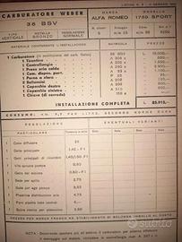 Introvabile coppia di carburatori Weber 36BSV in bronzo muniti di pompa di ripresa. Originali, come da tabella Weber, per Alfa Romeo 1750 6c sport e Fiat 520-521-522-524 (singolo). Completi ed in condizioni ottime con pompe di ripresa funzionanti. L'attacco per filtro aria è stato riprodotto fedelmente in ferro.