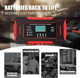 【4 modalità di Ricarica】Il caricabatterie per auto 12v utilizza i controlli touch screen e può essere commutato liberamente tra più modalità. Caricabatteria moto modalità "CAR", "AGM" e "MOTO" per piombo-acido DC12V batterie; e "REPAIR" modalità per batterie al piombo-acido. Nota: è severamente vietato utilizzare la modalità di riparazione per le batterie al litio.