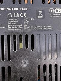 Caricabatteria CBE CB516 per caricare e mantenere batterie Piombo Acido/Piombo GEL e Piombo AGM del camper con una corrente massima di 16A. Usato ma perfettamente funzionante, è presente anche il cavo 230v, il connettore per il cavi positivo e negativo e il connettore faston per il cavo di segnale presenza 230v in centralina del camper.