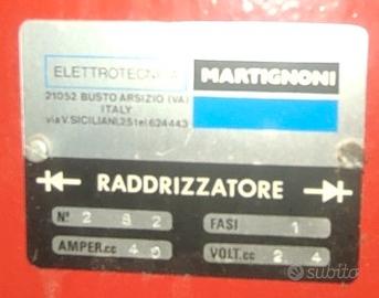 Raddrizzatore caricabatterie Martignoni modello 24volt 40 Amp. Perfettamente funzionante. Occasione