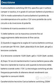 caricabatterie per camper e nautica cb-516 adatto a batteria al piombo e gel, per info vedi dettagli foto.