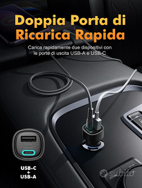 Caricatore auto USB/USB-C veloce doppia porta