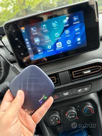 Dispositivo Carlinkit CPC200-Tbox Plus. Compatibile con Android Auto e CarPlay. Sistema Android completo. Caratteristiche: Android 13, 8 GB di RAM, 128 GB di disco rigido, scheda SIM, YouTube, Netflix, Disney+, Google Maps, CarPlay/Android Auto.