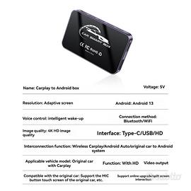 CarPlay AI Box 2G+16G Car Smart Box Android 13 Adattatore Wireless Carplay Android Auto con Uscita Video Compatibile