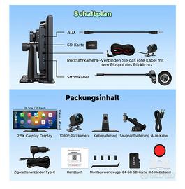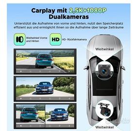 Wireless CarPlay Android Auto Display 10,25 Pollici Schermo per Auto Car Play con Dashcam Anteriore Posteriore 2,5K+1080P con Assistente Vocale Navigazione Bluetooth FM AUX Scheda TF 64GB