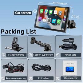 •【CarPlay wireless, Android Auto e Mirror Link】Car play per auto è dotato delle funzionalità CarPlay wireless, Android Auto e Mirror Link integrate, che consentono una connettività perfetta tra lo smartphone e il display dell'auto. Che utilizziate un iPhone o un dispositivo Android, potrete accedere facilmente al controllo vocale, alla navigazione, alla riproduzione musicale e molto altro, rendendo la vostra esperienza di guida più intelligente e confortevole.