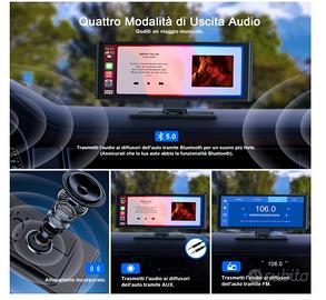 Avylet Carplay Wireless Android Auto/Apple car play, schermo per auto IPS 9.26" con telecamera posteriore. IDEALE PER TUTTE LE AUTO SENZA APPLE CARPLAY/ANDROID AUTO MA CON BLUETOOTH. - Grazie ad Apple CarPlay o Android Auto, puoi connettere il tuo smartphone senza fili al display da 9,26 pollici, per accedere facilmente a tutte le funzioni del telefono; Dopo la prima connessione, il dispositivo si ricollegherà automaticamente ogni volta che sali in auto, senza necessità di riconfigurazioni. - Il display da 9,26 pollici si integra perfettamente con Apple CarPlay wireless e Android Auto, sincronizzandosi con Apple Maps, Google Maps e Waze; Potrai visualizzare facilmente le mappe su uno schermo più grande, migliorando la sicurezza durante la guida. - Telecamera posteriore e assistenza al parcheggio: Questo schermo auto Android è dotato di una telecamera posteriore 1080p ad alta definizione e impermeabile (IP67), che facilita le manovre di parcheggio; Basta collegare il cavo rosso della telecamera alla luce di retromarcia, e il display mostrerà automaticamente l'immagine in retromarcia. - Le dimensioni del prodotto: Lunghezza: 24,1 cm; Larghezza: 9,6 cm. In vendita scontato su Amazon a € 109,99 (prezzo consigliato 129,99)