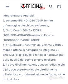 vendo bellissimo e nuovissimo carplay Android con soli 2 mesi di vita per cambio auto....le caratteristiche sono pubblicate nelle foto 📷 navigatore satellitare, recupero comandi al volante, microfono esterno ad alta risoluzione con cablaggio in omaggio.... funziona benissimo ed è bellissimo...completo di mascherina e adatto per Jeep renegade....per qualsiasi informazione non esitate a contattarmi....il prezzo è leggermente trattabile il carplay è visto e piaciuta non consegno e non spedisco zona di ritiro mirafiori nord via guido reni.