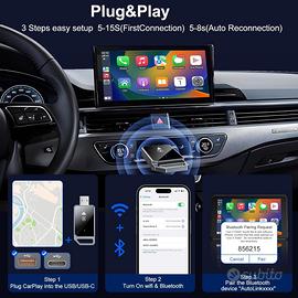 Plug&Play: l'adattatore carplay wireless richiede solo 3 semplici passaggi per essere configurato, collegare l'adattatore alla porta USB dell'auto, attivare il Bluetooth e il WiFi sullo smartphone e accoppiarlo una volta per abilitare le future connessioni automatiche. Dopo la prima connessione, si riconnetterà automaticamente al telefono entro 5-8 secondi, anche se è in tasca, nello zaino o fuori dall'auto