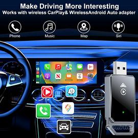 Design elegante e resistente: Questo elegante e classico adattatore wireless per Android Auto è il compagno perfetto per il vostro veicolo! Le sue dimensioni compatte e il design leggero lo rendono facile da portare con voi senza occupare molto spazio in auto, permettendovi di goderne in qualsiasi momento.Questo adattatore carplay wireless è stato rigorosamente testato per garantire una lunga durata