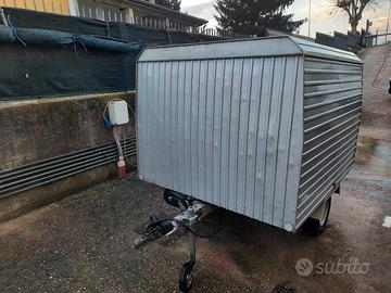 Il carrello è stato costruito dalla ditta Scatolini SpA ed è completamente chiuso. Ottimo per il trasporto di vari materiali o attrezzi, che si vogliono proteggere dalle intemperie e da sguardi indiscreti, il materiale di costruzione della struttura è lamiera.