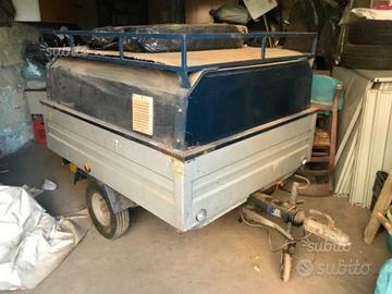 Vendo carrello appendice con cassone in lamiera zincata m. 1,20 x 1,50. Sponda posteriore ribaltabile. Coperchio in lamiera zincata e verniciata apribile con asta. Sponde in lamiera zincata e portabagagli sopra il tettuccio. Dotato di due pneumatici più uno di scorta posizionato sotto al carrello.
