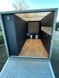 carrello in buone condizioni allestito per portare due moto con guardaroba e cassetti per vestiti o accessori vari.