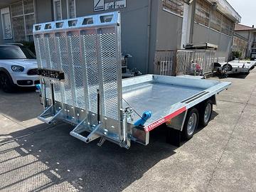 CARRELLO RIMORCHIO, PORTA ESCAVATORI 35Q., LUNGHEZZA PIANO DI CARICO CM400, RAMPA IN ACCIAIO, GOMMA DI SCORTA , LUCI LED, NUOVO DA IMMATRICOLARE, PREZZO AL NETTO DELL'IVA