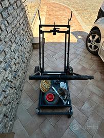 Vendo carrello porta kart, marca DALMI semiautomatico (sia con manovella che con avvitatore). In aggiunta: ruota di scorta carrello, n.7 corone universali kart, n.4 catene, staffa x attacco transporter piombo e stallonagomme in acciaio.