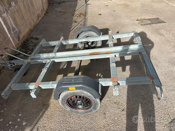 Carrello Porta moto usato poche volte UN POSTO con impianto luci a nuova normativa sospensioni ottime telaio profilato di lamiera grosso spessore zincato