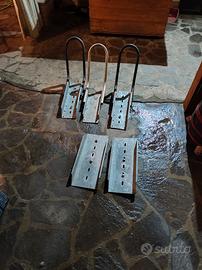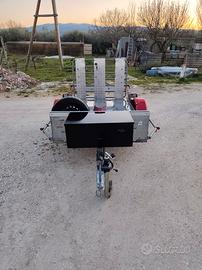 Carrello Rimorchio porta moto, omologato come trasporto cose Umbra Rimorchi, portata 750kg, entrano 3 moto da cross o 2 sportive, entra comodo un quad o un cart, impianto elettrico, fati, luci e spina nuovi, montata c'è una slitta blocca ruota, mentre smontate ci sono 3 slitte tradizionali di serie, gomme in ottimo stato con cerchi da 13 compresa la ruota di scorta, cassa portaoggetti montata sul timone e una piccola laterale, pianale in lamiera zincata con vari agganci per ancoraggio, lamiera antiscivolo in alluminio come rampa per salita.