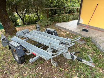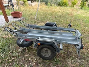 Carrello porta moto ellebi perfetto in tutto, sempre tenuto in garage, completo di ruota di scorta. Gomme nuove, tutto in regola per revisione. Possibilità di video in privato per vedere meglio.