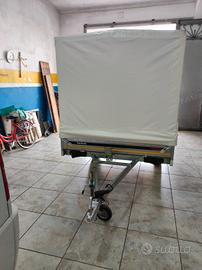 rimorchio con targa propria da passaggio, immatricolazione agosto 2025, percorso circa 450km,pari al nuovo senza freni, ruote da 13 zincato a caldo, misure interne 250x144 h 140, nuovo, posso spedire,prezzo poco trattabile per info 3493575710.