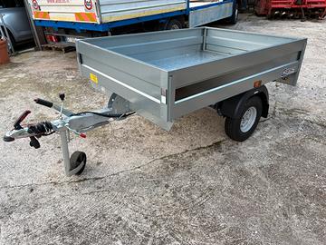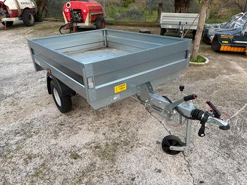 Peso a pieno carico 750 / 600 Kg Peso a vuoto 175 Kg Portata utile 575 / 425 Kg Lunghezza max 292 cm Larghezza max 150 cm Altezza 93 cm Dimensioni utili di carico 194x141 cm Altezza sponde 36 cm Altezza piano di carico 57 cm Ruote 5.00.10 PRINCIPALI CARATTERISTICHE • telaio basculante • freno a repulsione meccanica con sblocco autoreverse per retromarcia • sospensione a barra di torsione su gomma a ruote indipendenti • impianto luci a nuova normativa comprensivo di retromarcia • telaio profilato di lamiera grosso spessore zincata a caldo • ruotino di stazionamento zincato a caldo con cuscinetto per minimo sforzo in alzata • robusti ganci ad anello presenti sul pianale per fissare con sicurezza ogni tipo di carico • timone lungo per una migliore manovrabilità Il prezzo si intende senza immatricolazione