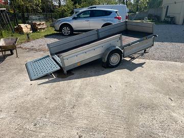 Rimorchio targato non frenato STEMA REX30 rampa di carico portellone basculante Praticamente come nuovo portata massima 750 kg Pianale perfetto Telaio perfetto lunghezza piano di carico 320x133 niente ruggine ruote perfette ha fatto pochi chilometri e con poco peso sponde anteriori apribili Sponde amiovibili velocemente Sul sito del produttore troverete anche accessori per paratie più alte, centine ecc. Nuovo costa 2500 euro poco trattabile