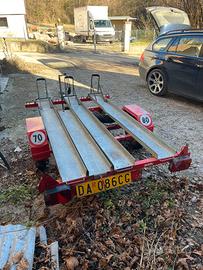 Come da titolo si vende carrello targato per attrezzature sportive e turistiche, quindi si può trasportare di tutto l’impianto elettrico è funzionante.