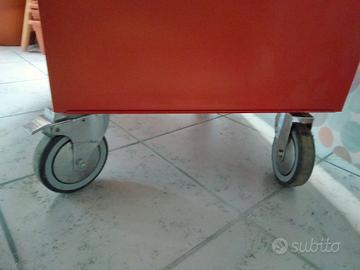 Ruote gommate diametro 120 mm: 2 fisse e 2 girevoli con freno.