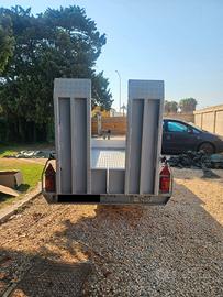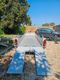 Carrello marca Metal Micanti MM12DA. Massa massima 1200Kg Data immatricolazione: 02/07/2008 Rimorchio per trasporto cose uso proprio. Carrozzeria Cassone Lunghezza: 5,2m Larghezza: 1,81m Larghezza interna sponde 1,31m Portata: 570Kg Rampe posteriori asportabili