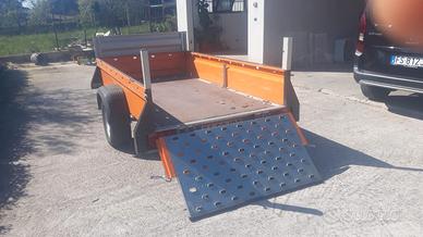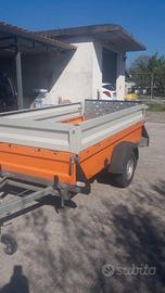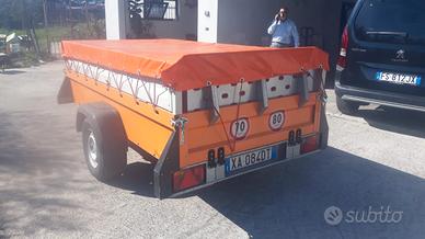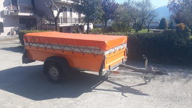 Carrello Vezeko, portata 990 Kg, robusto, colore arancione, completo di sponde, con telo in pvc, basculante, con revisione nuova, in perfette condizioni.