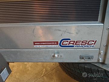 Vendo carretto Cresci omologato per gancio traino, con coperchio in vetroresina, freno, telaio profilato di lamiera grosso spessore zincata a caldo, ruotino di stazionamento, timone lungo per una migliore manovrabilita', impianto luci, sponda posteriore apribile. Usato ma in ottime condizioni, come da foto.