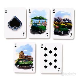 Con disegni della vecchia Fiat 500 al posto del jack, donna e re.