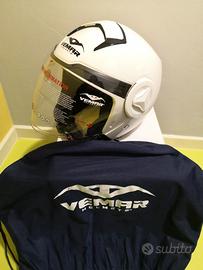 Casco jet nuovo come si vede da foto ancora con pellicole protettive e scatola, leggero comodo con visiera e visierina da sole integrata.