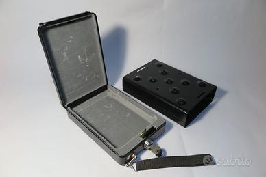 Cassaforte metallica, robusta, per auto, camper, roulotte, furgone. In robusto metallo. Dimensioni: 15 x 21 x 6 cm. Si fissa la struttura con 4/6 viti, si estrae la custodia e si porta con sè. Perfetto stato e funzionamento. Come nuova.