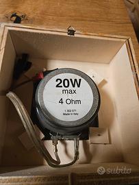 Casse x auto con logo originale Lancia montate su uno scatolato di compensato, probabilmente usate in casa. Non testate.