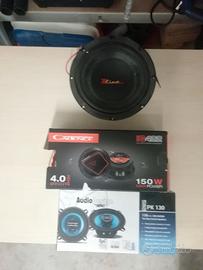 Casse 3 vie con tweetee integrati, mai usate, marca Impact (130mm)... 25€ Cadience (100mm)...55€ Subwoofer x-line old-school doppia bobina... 40€ Chi acquista entrambe subwoofer doppia bobina in regalo. Adatte a molto modelli di auto con diametri compatibili, come Fiat, ford, opel, mercedes, Toyota ecc.... NON SPEDISCO, solo ritiro in zona Rovato (bs) o consegno nei paesi limitrofi