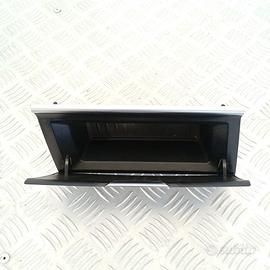 Cassetto portaoggetti sinistro consolle centrale BMW Serie 2 F45, smontato da veicolo del 2015, in plastica nera satinata con inserto superiore in alluminio spazzolato e maniglia cromata integrata. Il ricambio è completo e perfettamente funzionante, con apertura a pressione e chiusura ammortizzata. Montato nella consolle centrale tra i sedili anteriori, funge da vano richiudibile per piccoli oggetti, noto anche come portaoggetti centrale, vano accessori o cassetto centrale abitacolo. Tutti i ganci e supporti sono integri, pronto per l’installazione.