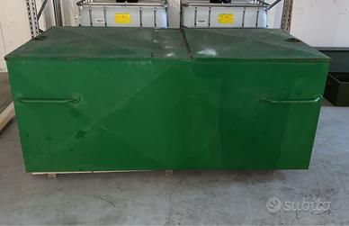 Vendesi cassone in metallo colorazione verde. Doppia apertura, una a destra e una a sinistra. Lunghezza 220 cm Larghezza 90 cm Da ritirare presso Roveredo in Piano
