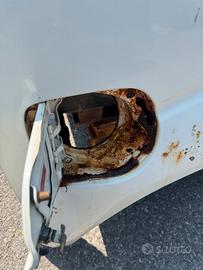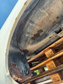Cassone usato presenta alcuni punti di ruggine passante, sul una parte laterale e all'interno dello sportello per il rifornimento, per il presenta qualche segno o ammaccatura come visibile in foto.