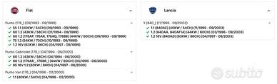 come da titolo vendo catalizzatore nuovo, mai usato, per i seguenti modelli: * FIAT PUNTO (176_) 1.2 16V 04.1997 - 09.1999 63 86 1242 * FIAT PUNTO (176_) 55 1.1 09.1993 - 09.1999 40 54 1108 * FIAT PUNTO (176_) 60 1.2 01.1994 - 09.1999 43 58 1242 * FIAT PUNTO (176_) 60 1.2 03.1994 - 09.1999 44 60 1242 * FIAT PUNTO (176_) 75 1.2 10.1993 - 09.1999 54 73 1242 * FIAT PUNTO Cabriolet (176_) 60 1.2 04.1994 - 06.2000 43 58 1242 * FIAT PUNTO Cabriolet (176_) 60 1.2 05.1995 - 06.2000 44 60 1242 * FIAT PUNTO Cabriolet (176_) 85 16V 1.2 04.1997 - 06.2000 63 86 1242 * FIAT PUNTO Van (176_) 1.1 04.1996 - 02.2000 40 54 1108 Furgonato * LANCIA Y (840_) 1.1 (840AE) 11.1995 - 09.2003 40 54 1108 * LANCIA Y (840_) 1.2 (840AA, 840AF1A) 03.1996 - 09.2003 44 60 1242 * LANCIA Y (840_) 1.2 16V (840AD) 04.1997 - 09.2003 63 86 1242