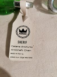 Catena antifurto Konig Sherif con luchetto CISA hardened 280/55 + 2 chiavi. Lunghezza 120 cm diametro 10 cm. Peso circa 3 kg Tutto nuovo mai usato, catena di estrema sicurezza