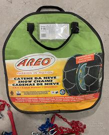 Set di catene da neve omologate Areo Gruppo 116 mai usate. Misure come da cartellino per R14, R15, R16 R17 e 17,5. Per auto, 4x4, minibus, furgoni, centinati, come ducato. Ritiro a mano. Lasciare un messaggio se interessati.