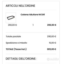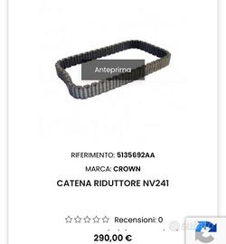 Vendo catena riduttore NV 241 marca crown per jeep : Jeep Wrangler (JK) (2014-2018) w/ 3.0L gas engine; w/ NV241 or NV241OR Jeep Wrangler (JK) (2012-2018) w/ 3.6L engine; w/ NV241 or NV241OR Jeep Wrangler (JK) (2010-2011) w/ 2.8L Diesel engine; w/ NV241 or NV241OR con/ 47 denti Nuova mai usata con annessa ricevuta. Acquistata per presunto problema al riduttore poi rivelato all apertura un altro il danno. Costo da listino 299€ cedo a 200€