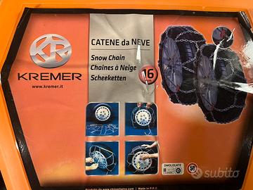 Vendo catene da neve *Kremer*, in *acciaio temprato*, con *ingombro interno 16 mm*, ideali per SUV e veicoli di medie e grandi dimensioni.