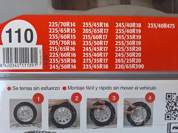 Catene da neve per auto compatibili con la misura di copertone indicata in foto.
